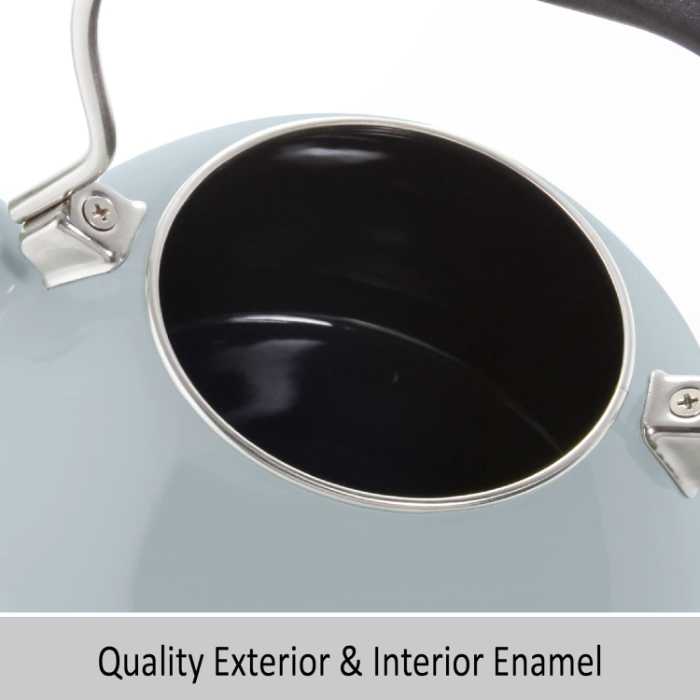The heavy-duty enamel interior resists hard water and is safe for use on all stovetops including magnetic induction, flat base ensures maximum contact for rapid boiling.